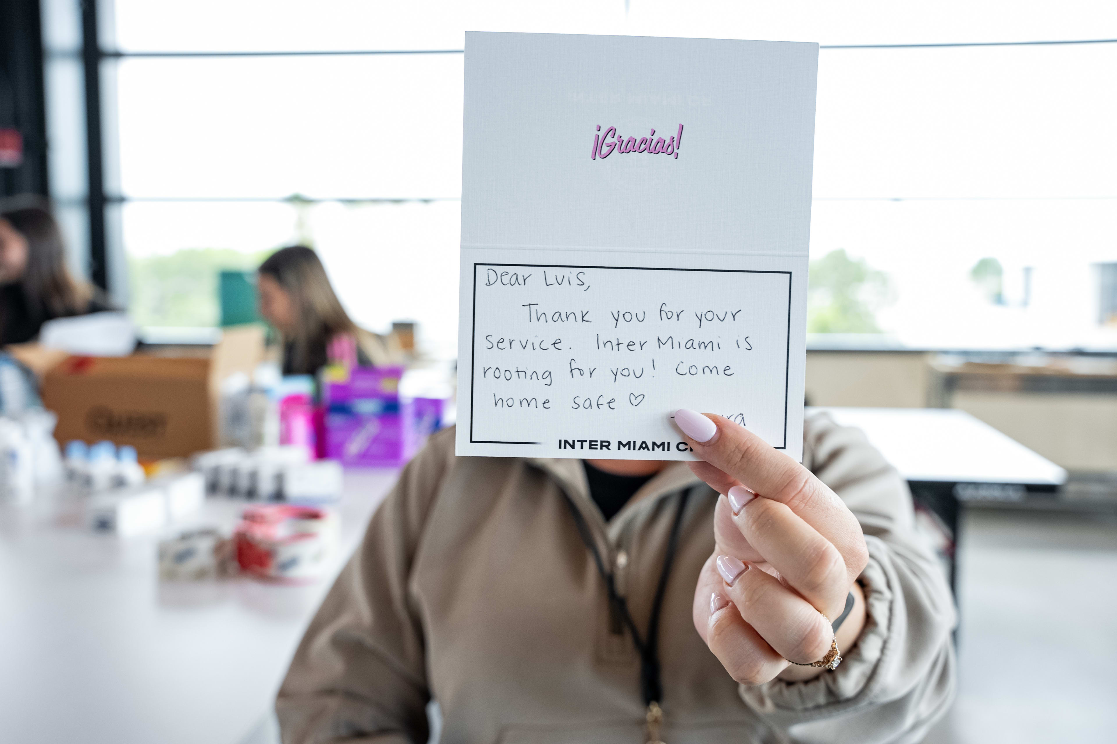 The care packages to honor our heroes were carefully crafted by Inter Miami staff to ensure they receive a memorable surprise, including a personalized note in each box to bring them joy on the special occasion.